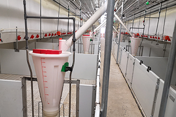 多檔調(diào)節(jié)、超大容量、濕拌料設(shè)計(jì)提高采食量20% 以上,1個(gè)喂料器可飼喂40頭100公斤的育肥豬